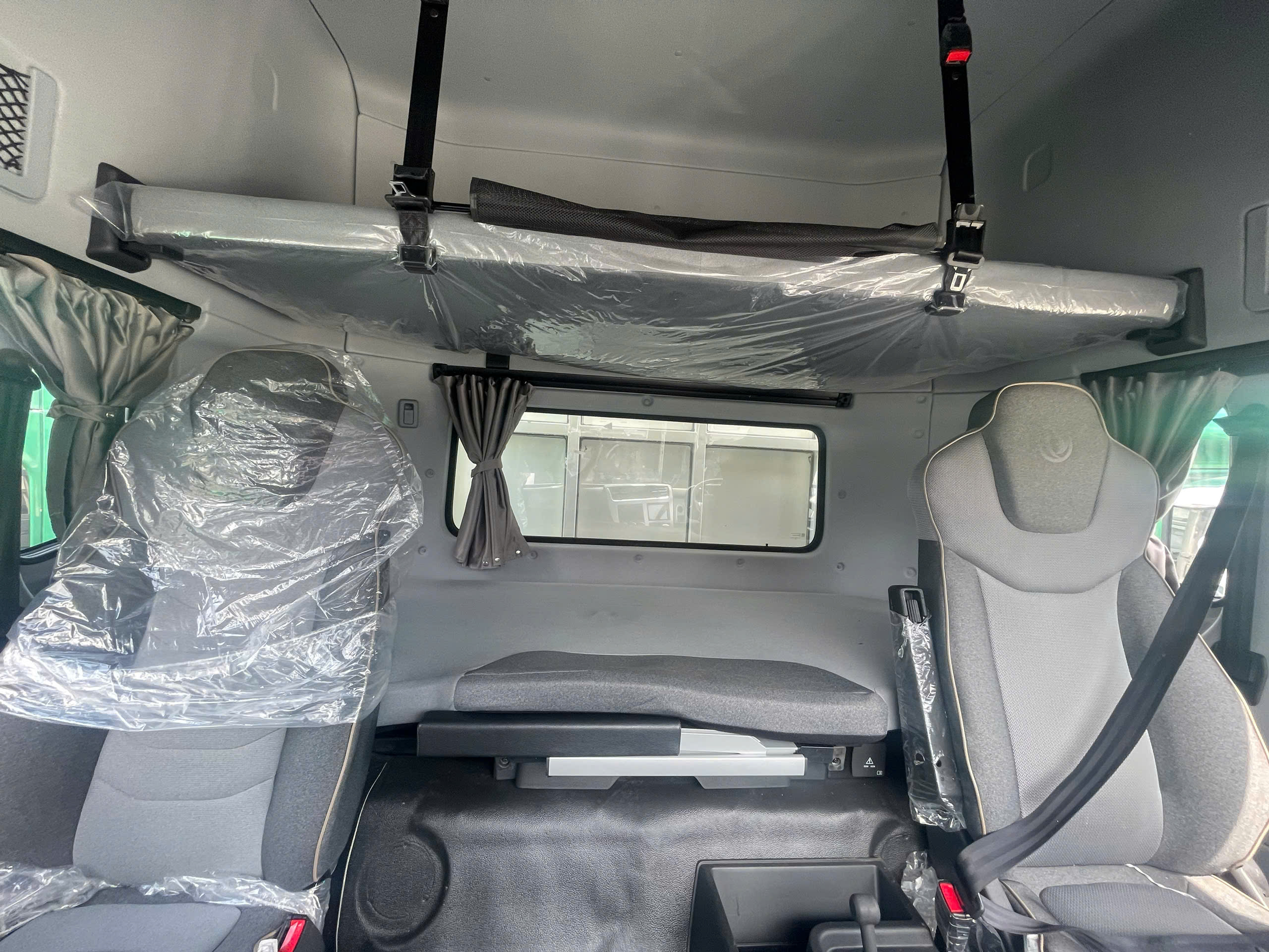 Không gian lái: cabin rộng, 02 ghế ngồi, 02 giường nằm, giường ngủ rộng rãi, rèm che, máy lạnh 2 chiều